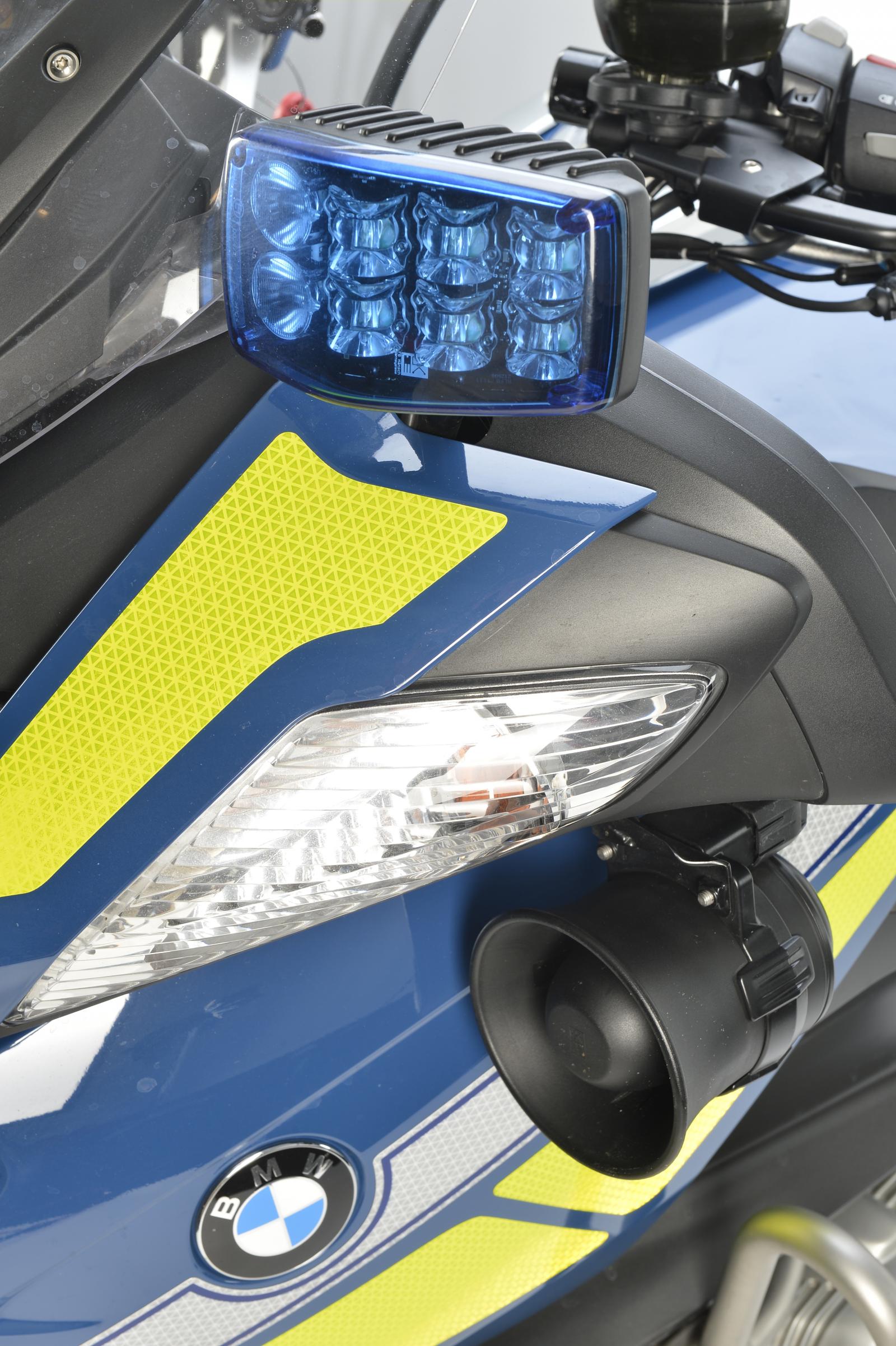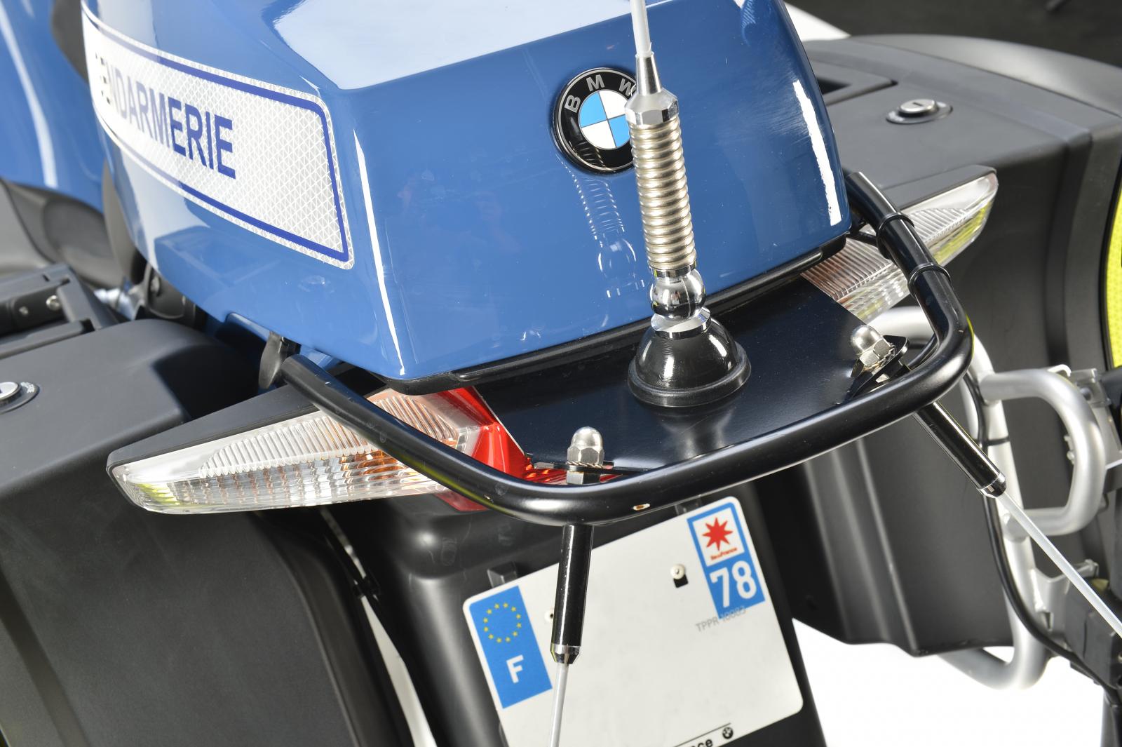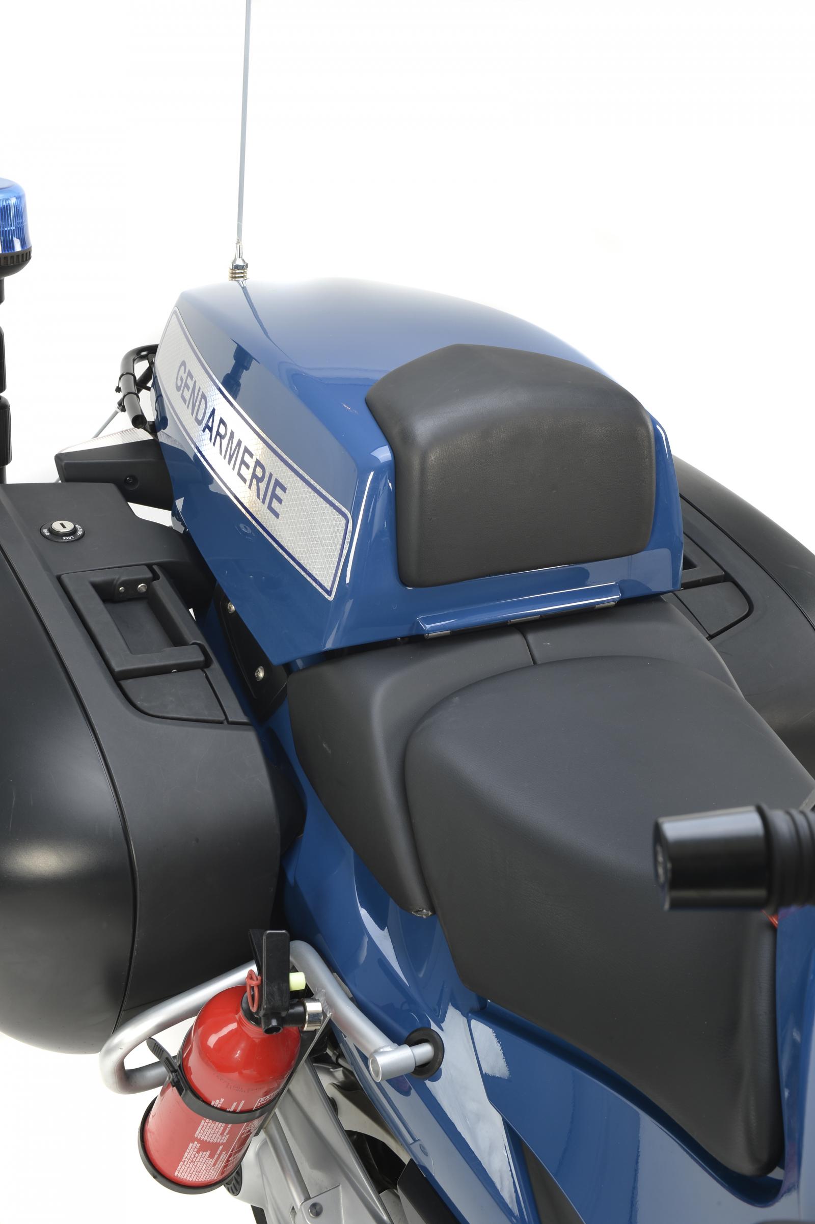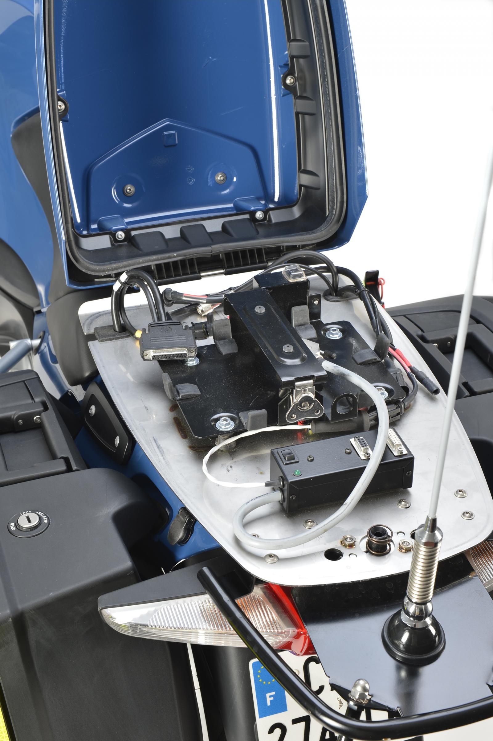 La transformation entre les moto civiles et les motos équipées selon les administrations est réalisée chez l’équipementier GRUAU. A noter l’ajout de gyro sur le dosseret de selle qui améliorera la visibilité de côté, ainsi que la nouvelle sérigraphie bleu/jaune qui tend à se généraliser sur les nouveaux véhicules.