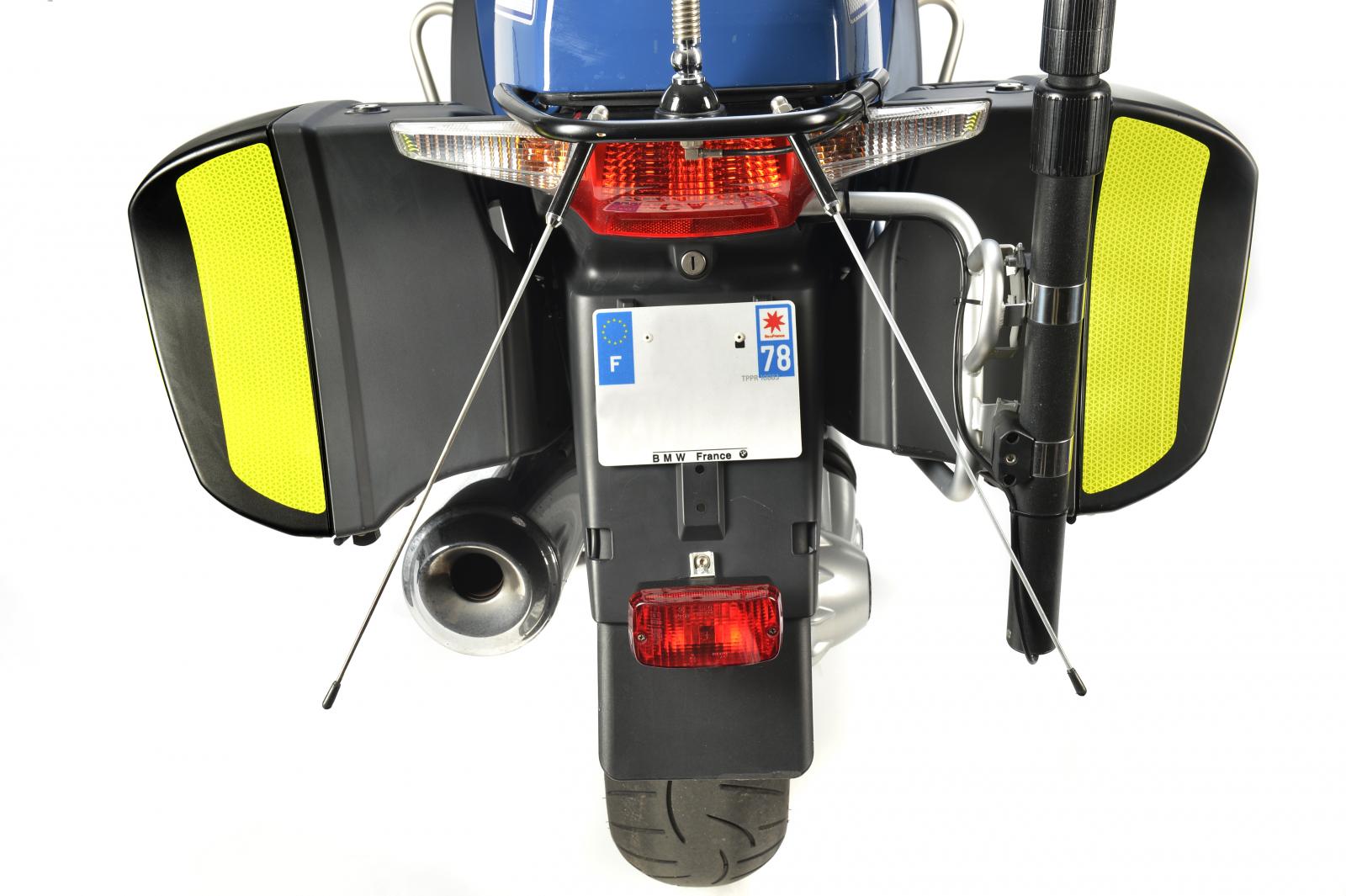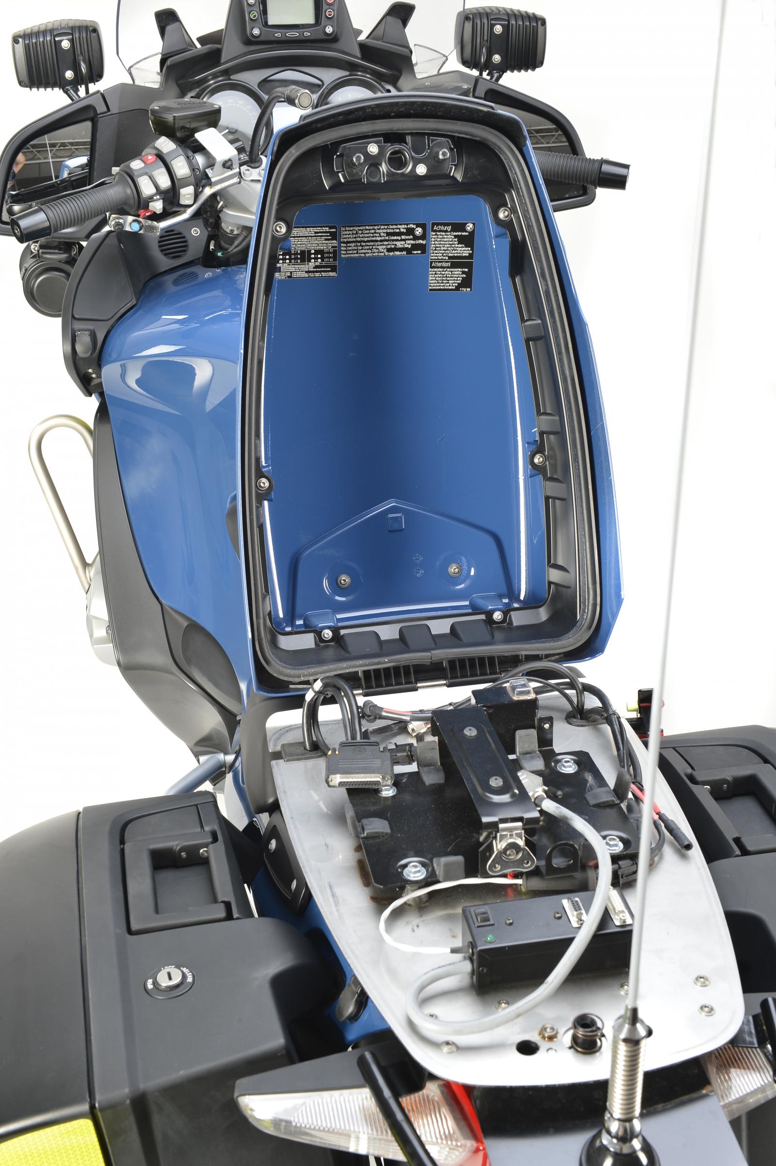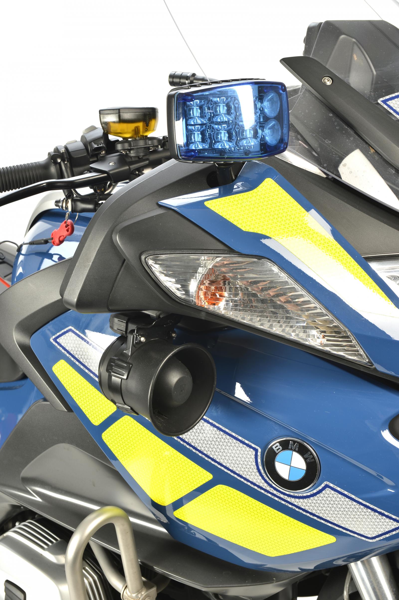 La transformation entre les moto civiles et les motos équipées selon les administrations est réalisée chez l’équipementier GRUAU. A noter l’ajout de gyro sur le dosseret de selle qui améliorera la visibilité de côté, ainsi que la nouvelle sérigraphie bleu/jaune qui tend à se généraliser sur les nouveaux véhicules.