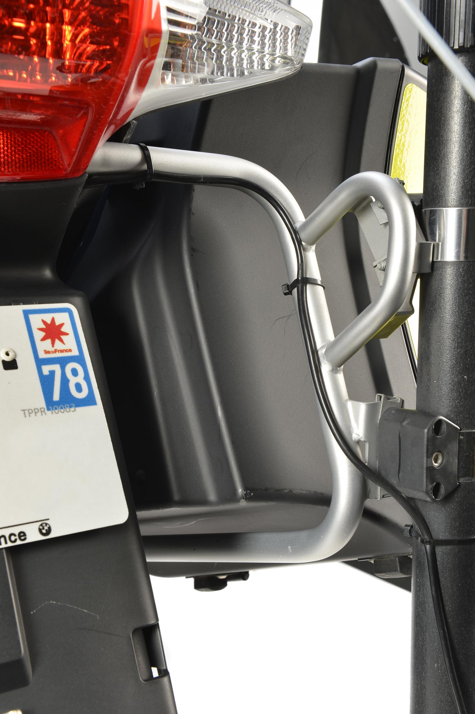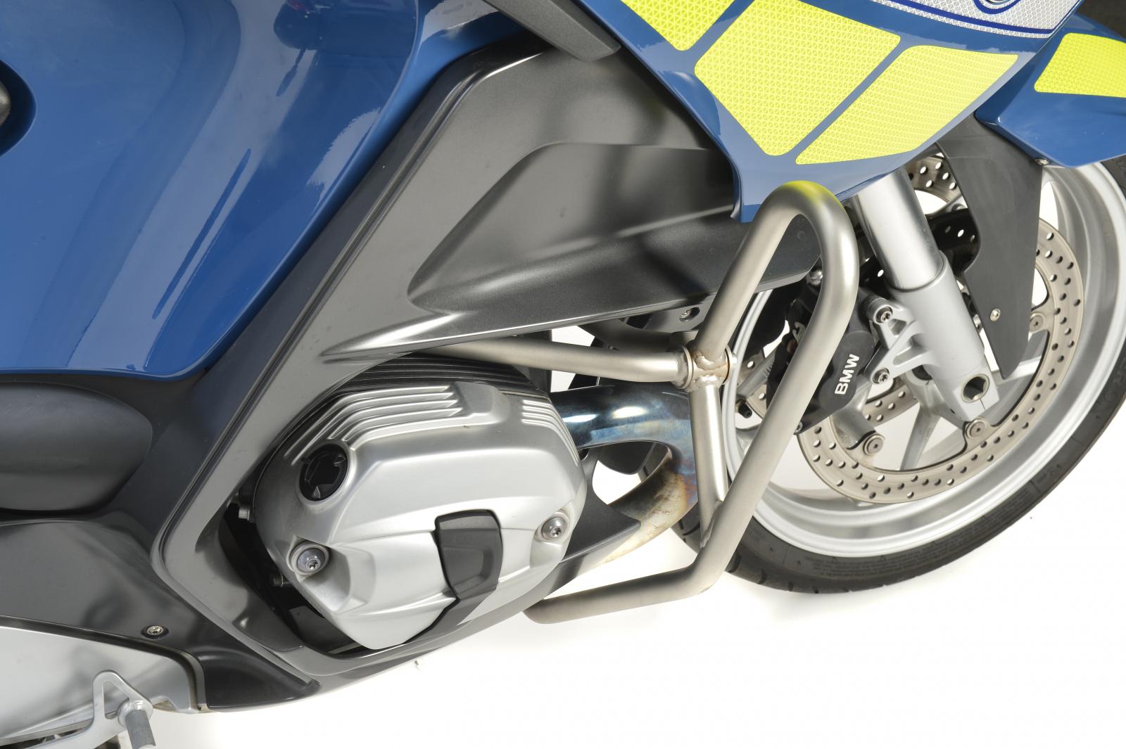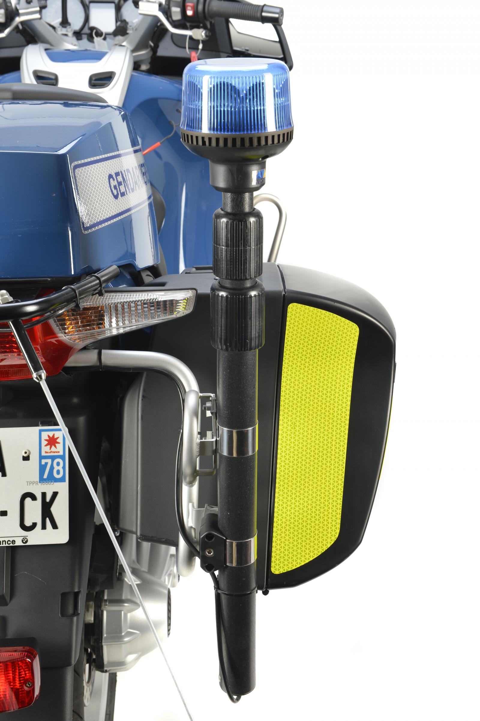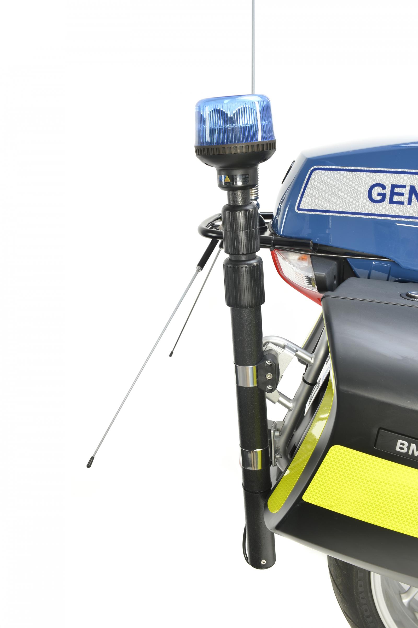 La transformation entre les moto civiles et les motos équipées selon les administrations est réalisée chez l’équipementier GRUAU. A noter l’ajout de gyro sur le dosseret de selle qui améliorera la visibilité de côté, ainsi que la nouvelle sérigraphie bleu/jaune qui tend à se généraliser sur les nouveaux véhicules.